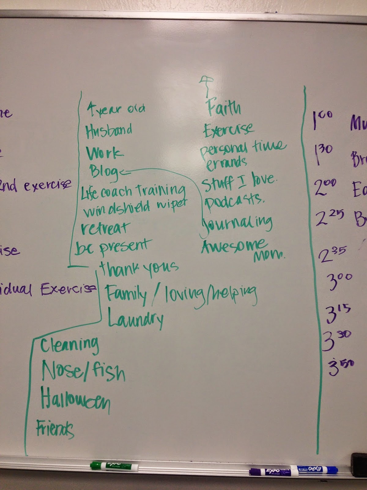 Here’s a peek at why my own first brain dump looked like the day of the retreat. I wrote this list out in front of our participants as an example of everything that was stuck in my brain that day, on my never-ending mental to-do list. It’s not fancy, and I didn’t use a filter on what I put on the list. As it hit my brain, I wrote stuff down. And, this is where you’ll start, with a brain dump of ALL the things are you’re balancing.